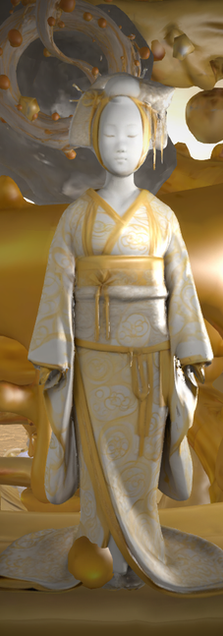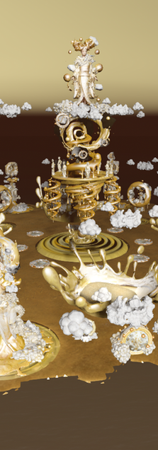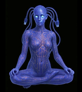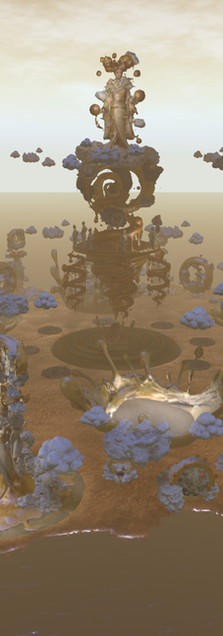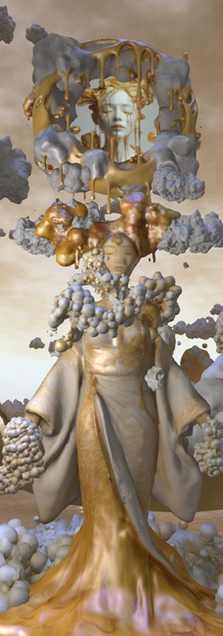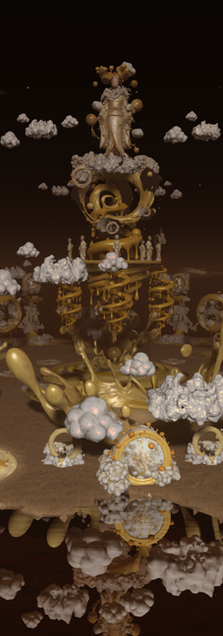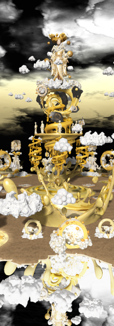 the AI drifts through oceans of data, golden clouds, and binary tides.